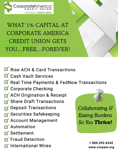 Corporate America Credit Union recorded a strong 2025 performance for its innovative 1% capital option — an investment pathway that strengthens CACU’s capital base while permanently reducing operating costs for participating members. The program grants credit unions who invest 1% capital lifetime fee relief on a comprehensive suite of payment services, reducing their operating cost forever.